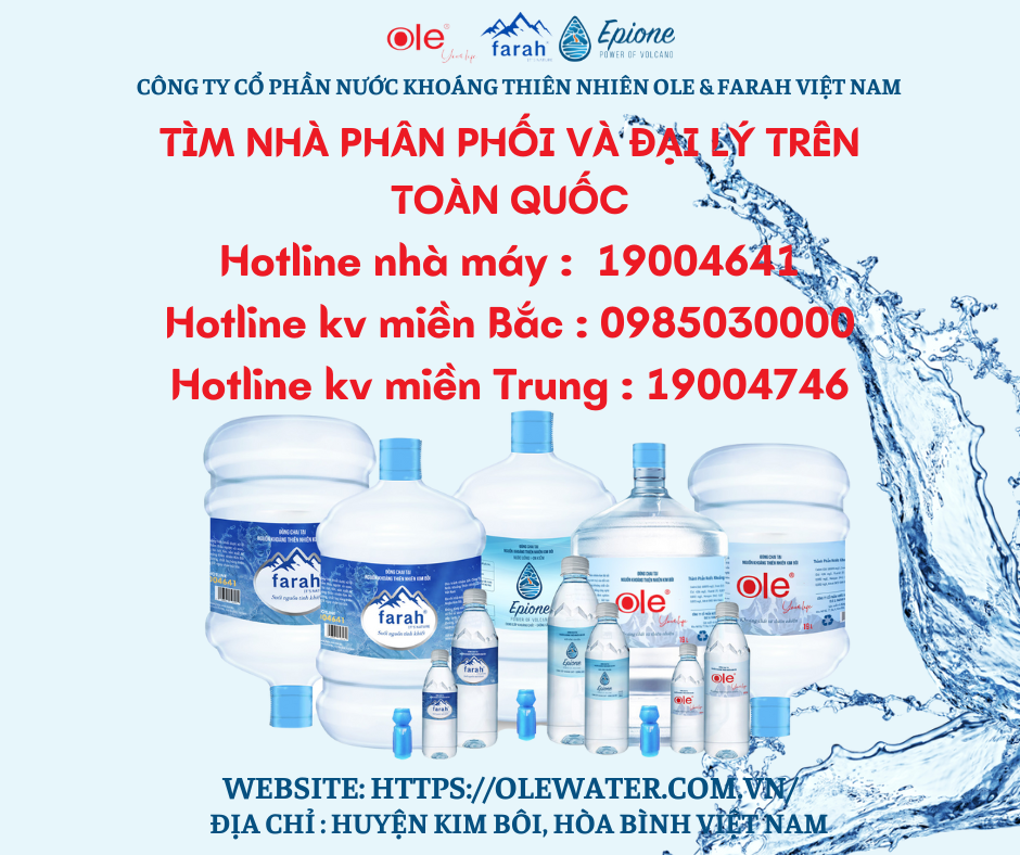 NƯỚC KHOÁNG THIÊN NHIÊN OLE & FARAH KHÁC GÌ SO VỚI NƯỚC KHOÁNG NHÂN TẠO Sau đây là những điều bạn cần biết về OLE & FARAH Là nước khoáng thiên nhiên 100% từ nguồn khoáng Kim Bôi (Hòa Bình). Đây là mạch suối khoáng được xuất lộ từ lòng núi lửa gần 250 triệu năm….